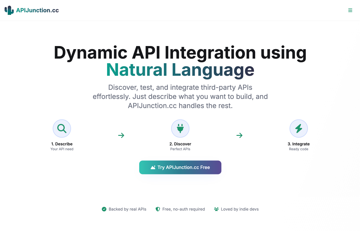 This started as a way to boost my own productivity, making it easier to find and use the right APIs without getting bogged down in technical overhead. But I also built it with a larger shift in mind. As AI lowers the barrier to building, I see more people stepping into roles they wouldn't have attempted before. APIJunction is meant to support that momentum. A tool for solopreneurs and indie builders who want to tap into what emerging tech can do, without needing to learn everything under the hood. It's part of a broader effort to help more people build what they imagine, faster. Like selling shovels in the early days of a new gold rush.
